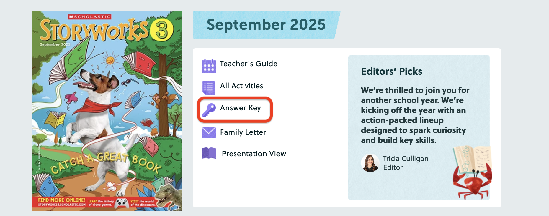 Jump down to learn more about lesson plans, skill building activities, the send-home letter, magazine view, story cards, and multimedia resources.