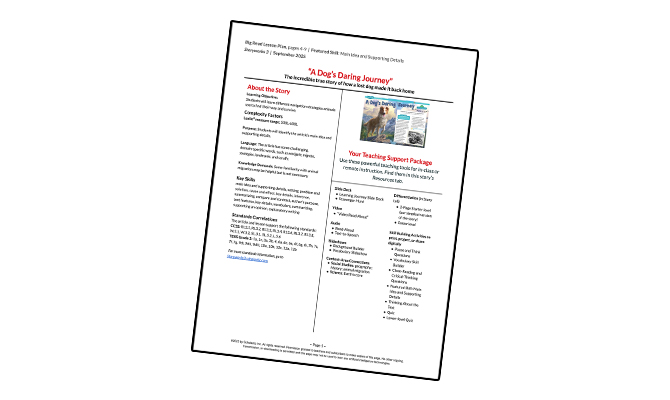 Lesson plans come with every story. They give you easy to follow, step-by-step guidance in teaching each story, and show you how to use our online resources. Check out the Lesson Plan tab of any article to see the lesson we’ve put together. If you want to print the lesson plan, click Download the Lesson Plan at the top of the section.
