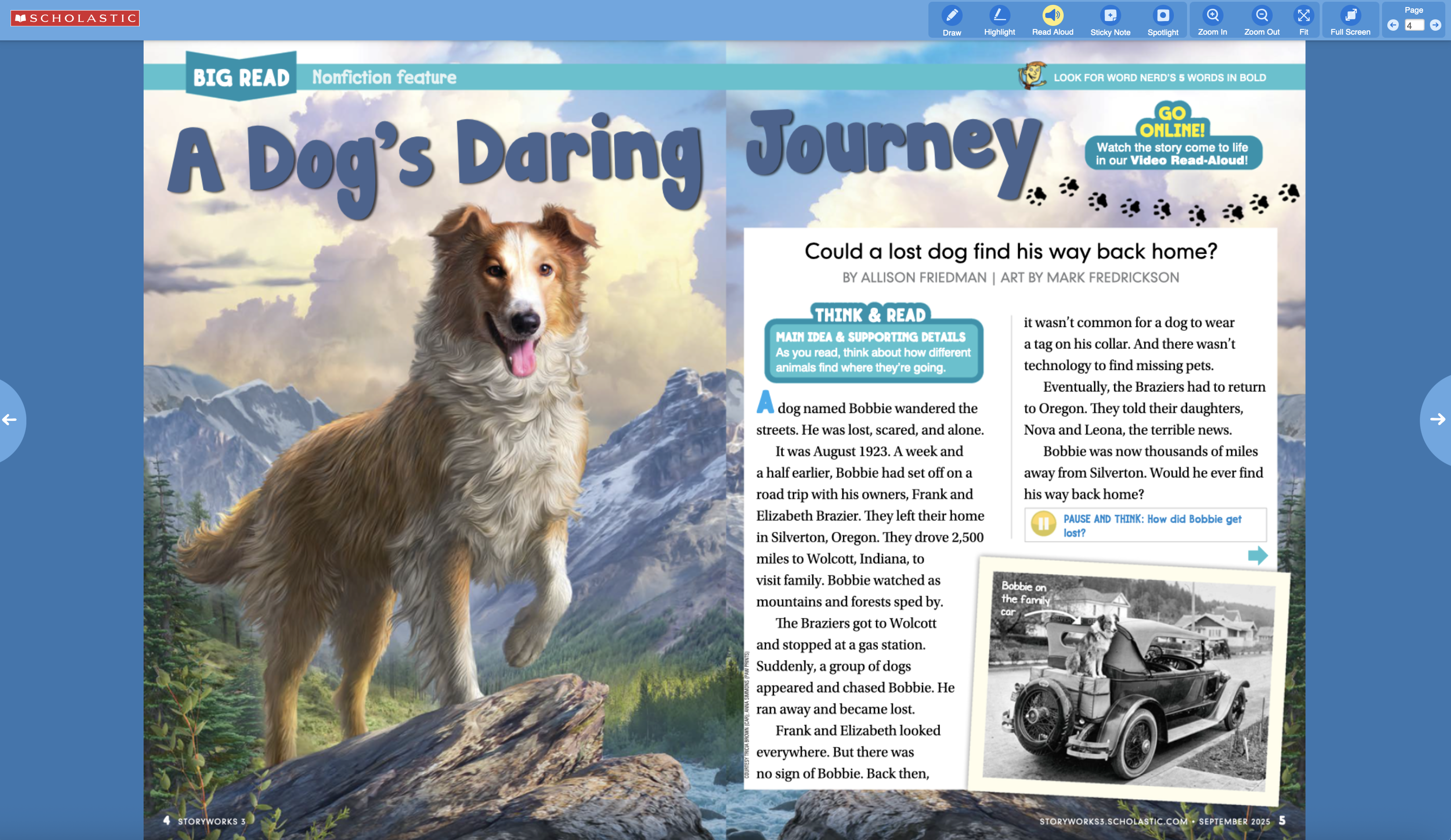 Magazine View offers a view of the magazine that looks exactly like the print version. This view is perfect for projecting on your screen in the classroom, while students follow along with their issues. If you click the “Read Aloud” icon at the top, you’ll hear each story read aloud, with each word highlighted along the way. It’s perfect for modeling fluency and building reading stamina!
